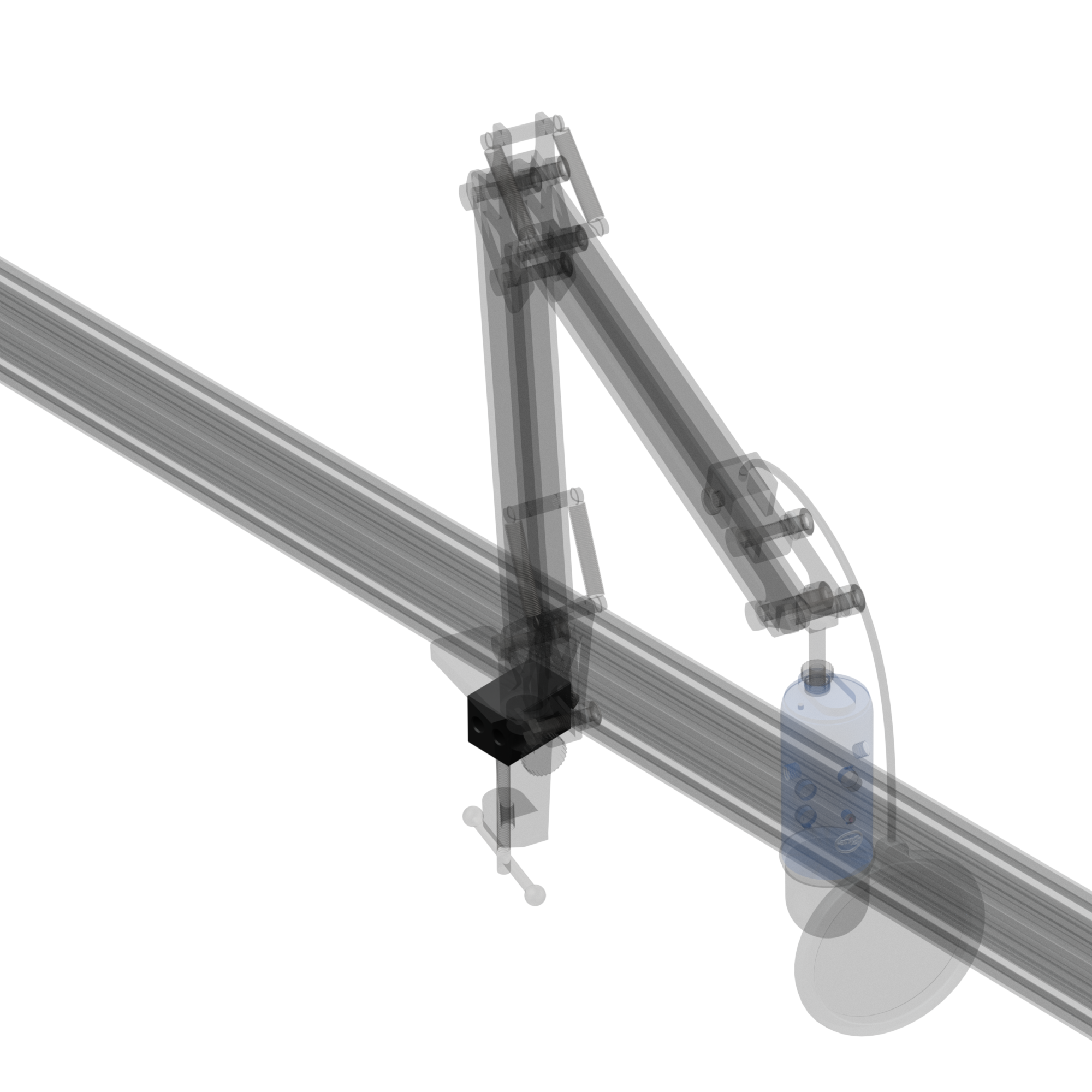 Mounts directly to aluminum profile sim rigs to support desk clamp style microphone boom arms.